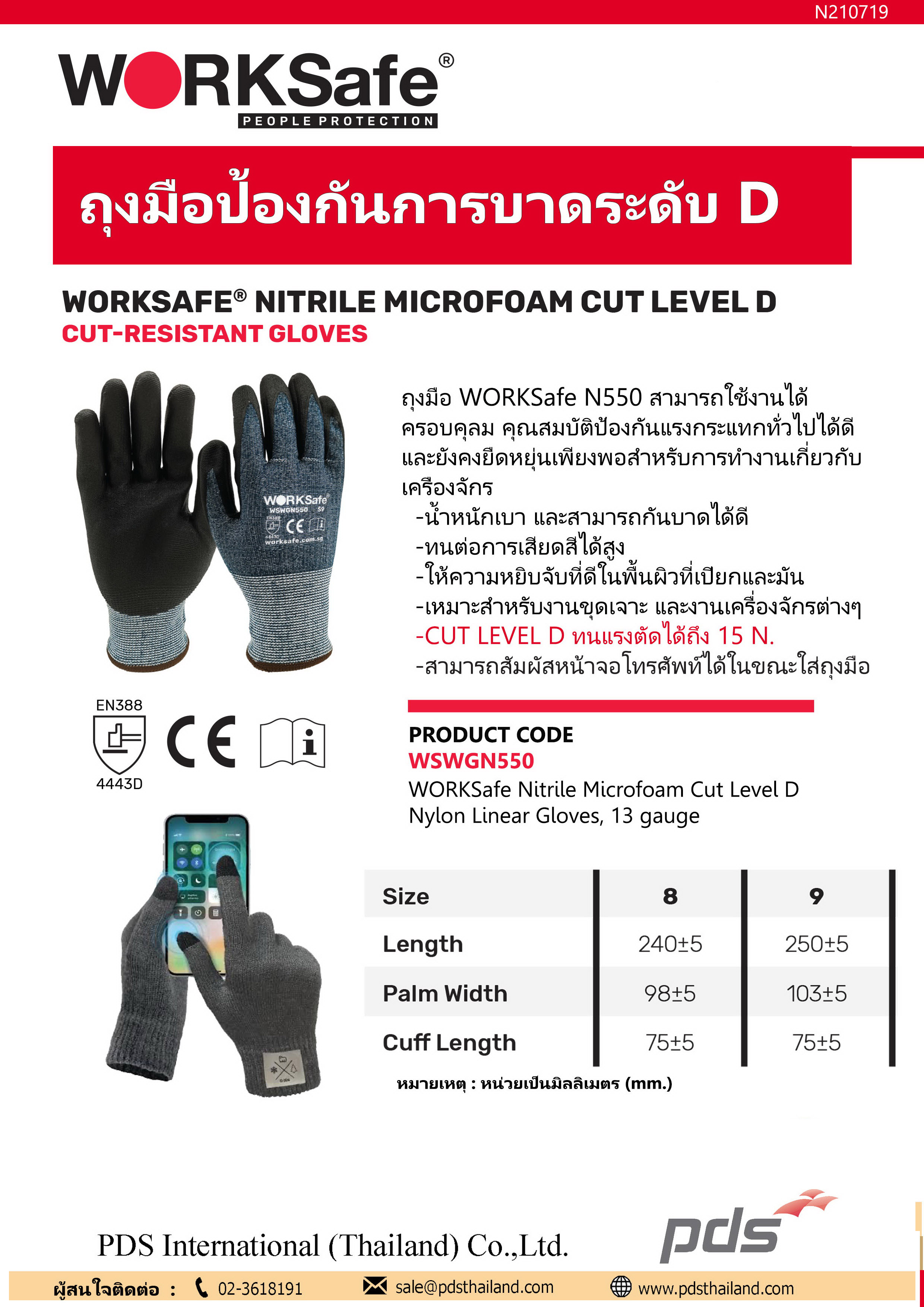 รหัสสินค้า : WSWGN550 ชื่อสินค้า : ถุงมือไนไตรป้องกันการบาด Level D